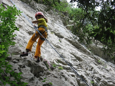 El Roure, la Sílvia i el Gerard s'ho passen molt bé. La roca està humida, fa fred i amenaça de nou pluja... però tenim ganes d'escalar i veure el paisatge des d'una altra perspectiva!